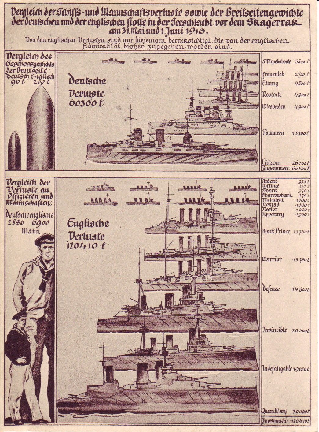 Comparison of the sailor and crew losses as well as the broadside weights of the German and English fleets in the naval battle off the Jutland on May 31 and June 1, 1916.