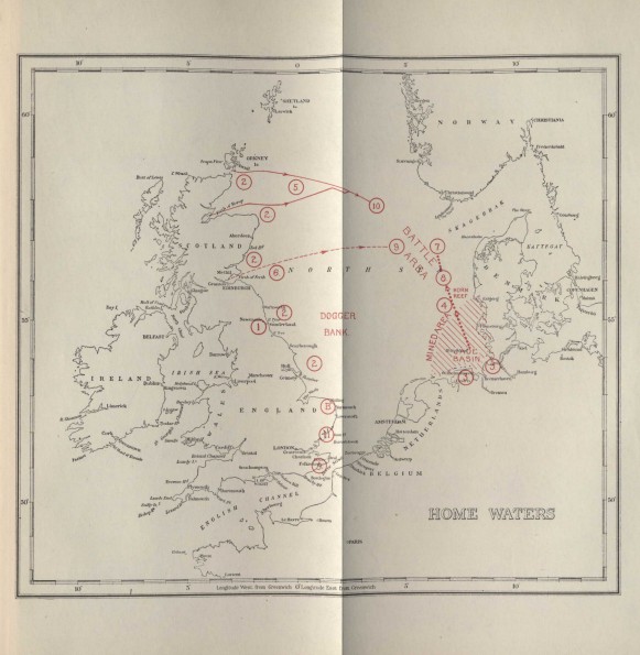 The beginning of the war was relatively calm for the British Royal Navy. With little for the sailors to do, Admiral Sir John Jellicoe instituted exercises and training drills designed to keep the fleet ready for any conflict. While the navy were performing “occasional sweeps…, tactical exercises, target practice…, and coal[ing] ships” (Warships 73), Jellicoe was exercising his “rocklike refusal to be stampeded into any adventures that would threaten the British command of the North Sea” (Warships 73). Should Jellicoe engage in a battle and lose, he could be held responsible if the Germans instituted a British blockade. However, Jellicoe’s ability to refuse confrontation ended when the German Admiral Pohl, who was reluctant to challenge the Grand Fleet, was replaced due to a terminal cancer diagnosis. His replacement, former Vice-Admiral Reinhard Scheer, was intent on weakening the Grand Fleet. Scheer’s strategy was to separate a small part of the fleet until he could actively engage it in battle; meanwhile, his U-boats and sea mines would occupy the rest of the fleet until a “full scale encounter between the two opposing fleets would not be too hazardous an adventure” (Warships 73). To achieve this, Scheer orchestrated multiple encounters between the fleets. His first attempt, on February 10th, and his second, three weeks later, were both failures (Warships 73). These instances did inspire the British to have raids of their own, but, all British and German attempts would fail until the Germans’ fourth and final plan, which led to the Battle of the Jutland.