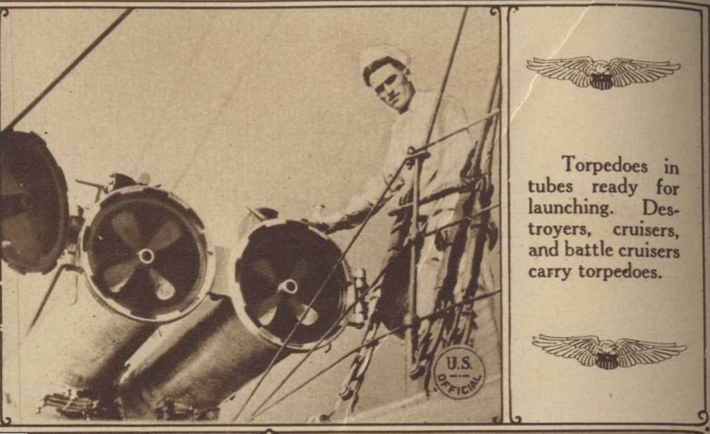 Many different vessel types were deployed during the Great War. Some of the most well-known were the German U-boats that sparked terror through their use of unrestricted submarine warfare, the practice of attacking any enemy vessel regardless of whether it was a civilian or military ship. Naval destroyers were one of the most important types of vessels in the war due to their ability to inflict damage through their heavy mounted guns and highly technical aiming systems. (Warships 77). Many countries, including Germany and the United States commandeered civilian ships to be used in service. These civilian ships, including yachts and merchant ships, were used for various military tasks, such as mine-laying or the escort of important political figures. For American soldiers, despite the luxury, being assigned to a yacht was often ultimately a disappointment because they were unfit for naval combat (Still 313). As for the number of American ships built during the war “the [United States] Navy added 208 ships – 87 private yachts, 39 tugboats, 8 tankers, 50 merchant ships, 12 passenger liners, and 12 fishing boats… By the war’s end, the Navy boasted 774 commissioned ships” (Still 307). These numbers are a representation of total warfare as suggested by the Navy Department and Congress’s official recommendation of “As many [scout destroyers] as possible” to be made in 1917 (Besch 5). To put this in perspective, in 1897 Germany released plans to build at least ninety-seven new ships under the guise of “commercial considerations” and constructing “a political power factor which England could not ignore” (Padfield 41). Effectively, the United States, while at war, doubled the peace time ship construction of Germany.